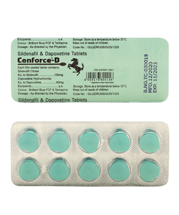 - Cenforce D je určen k léčbě erektilní dysfunkce a předčasné ejakulace. Lék je kombinací sildenafil citrátu a dapoxetinu.